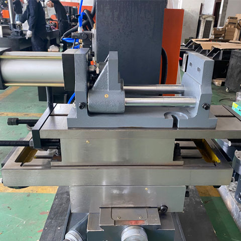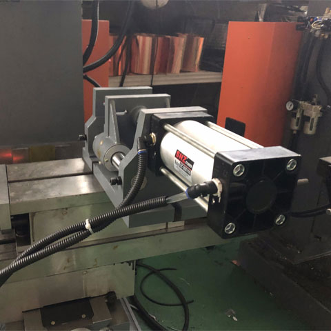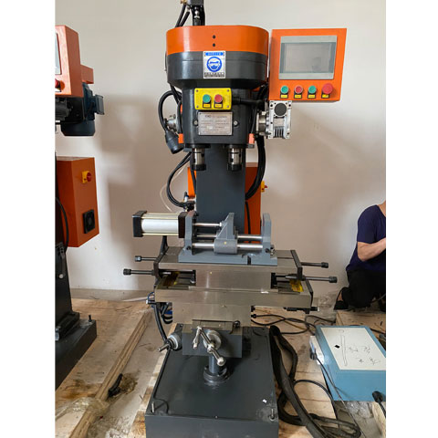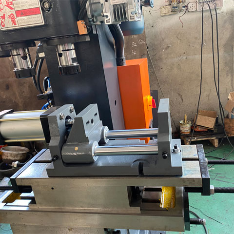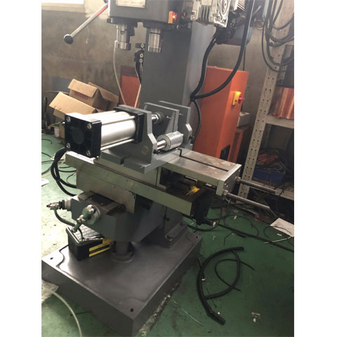 Kẹp, xử lý hai lỗ cùng lúc, khoảng cách lỗ xử lý tối đa là 170mm (chẳng hạn như xử lý 210mm cần phải tùy chỉnh), quy trình xử lý: Khoan lỗ đầu tiên - trụ bàn di chuyển sang trái - khoan lỗ thứ hai - xi lanh trượt di chuyển sang trái - xi lanh trượt di chuyển sang phải - gõ vào răng thứ hai - xi lanh bàn di chuyển đến trục khoan (trở lại vị trí) - kẹp - quay lại chu kỳ.