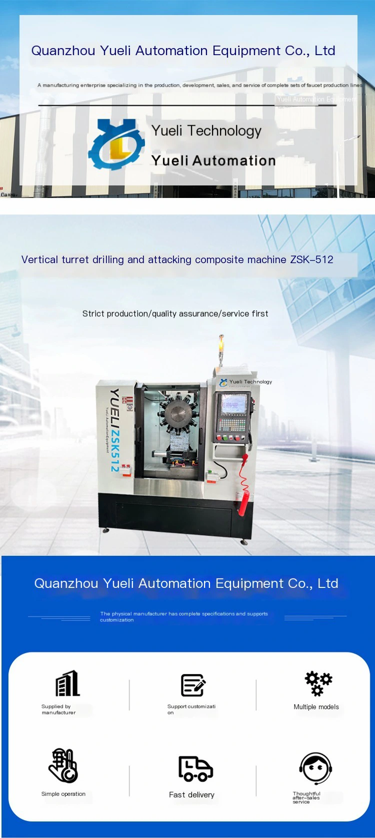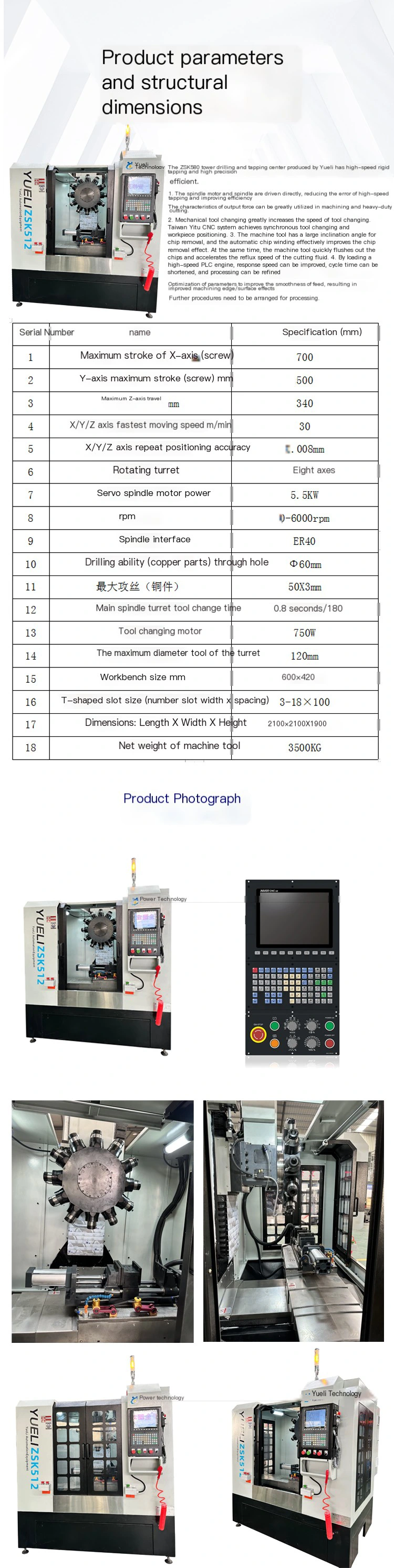 Yueli sản xuất máy khoan tháp pháo và trung tâm khai thác ZSK580 với gõ cứng tốc độ cao, độ chính xác cao và hiệu quả cao.
